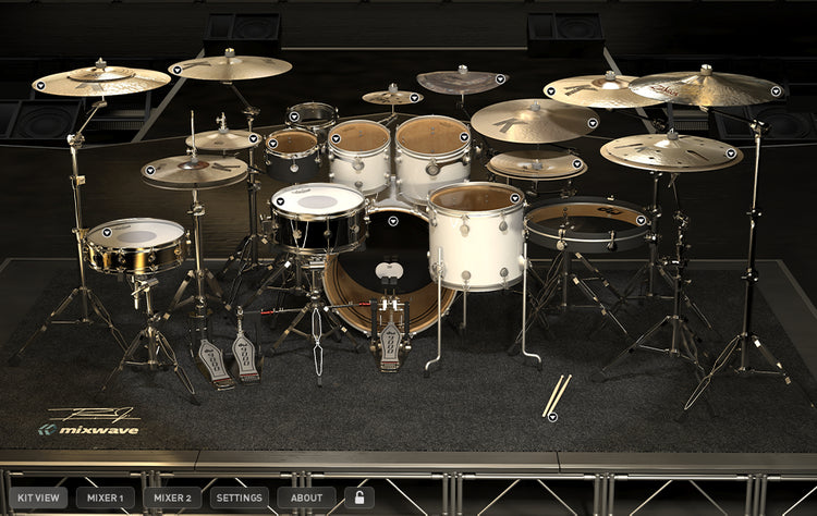 Featuring 13 drums with 6 snare drum options and an array of 11 cymbals, sampled and mixed at MixWave Studios.