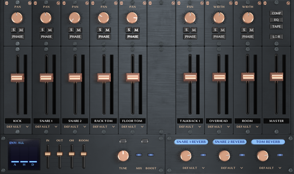 Dial in pre-mixed reverbs, or the additional built-in master channel fx including a compressor, EQ, and tape saturation.
