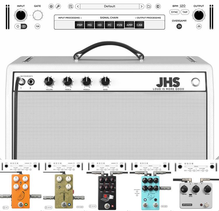 Known for innovative sound, quality craftsmanship and user-friendly features, JHS pedals have become immensely popular for their blend of vintage character and modern versatility. This collection captures the essence of their pedal-friendly amplifier and its seamless synergy with a curated selection of JHS’s most celebrated pedals, offering everything from transparent overdrive to immersive ambience.