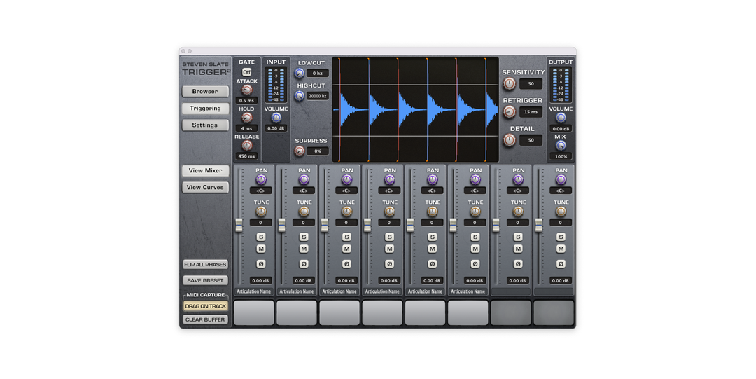 Go from completely raw samples to mix-ready drums with one click using the fully featured and intuitive mixer-style interface.