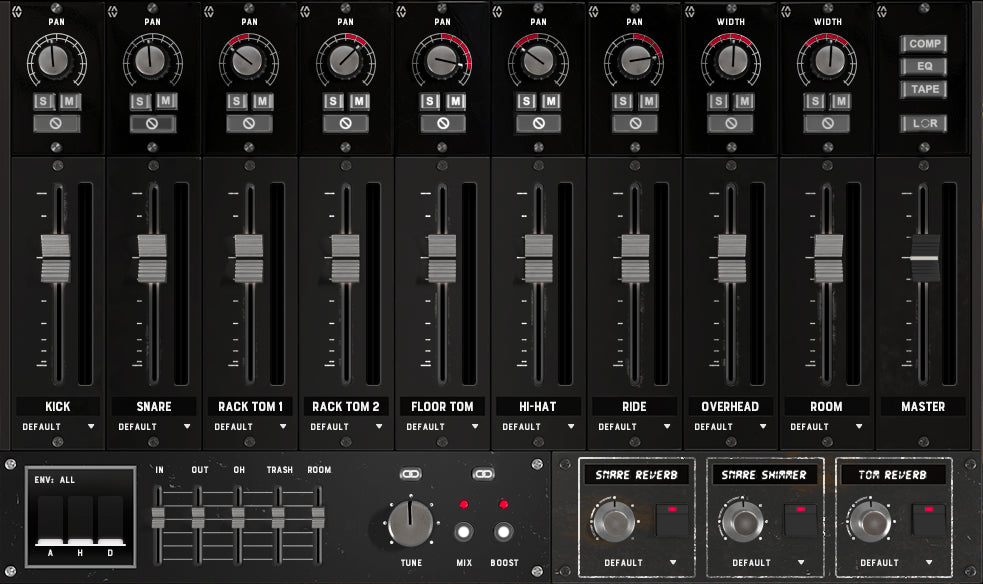 Dial in pre-mixed reverbs or the additional built-in master channel fx including a compressor, EQ, and tape saturation.