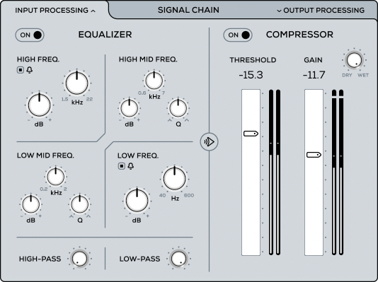 The onboard EQ and compressor that can be used before and after the signal allows for instant mix-ready results without ever leaving the plugin.